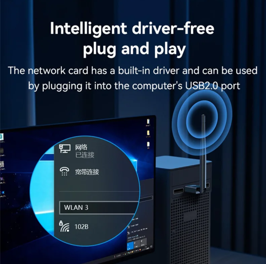 Yesido WiFi4 150Mbps Wireless USB Dongle with External Antenna – High-Speed WiFi Adapter